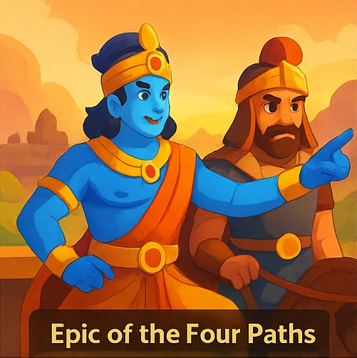 Live the Gita through four intertwined journeys — Arjuna, Bhishma,